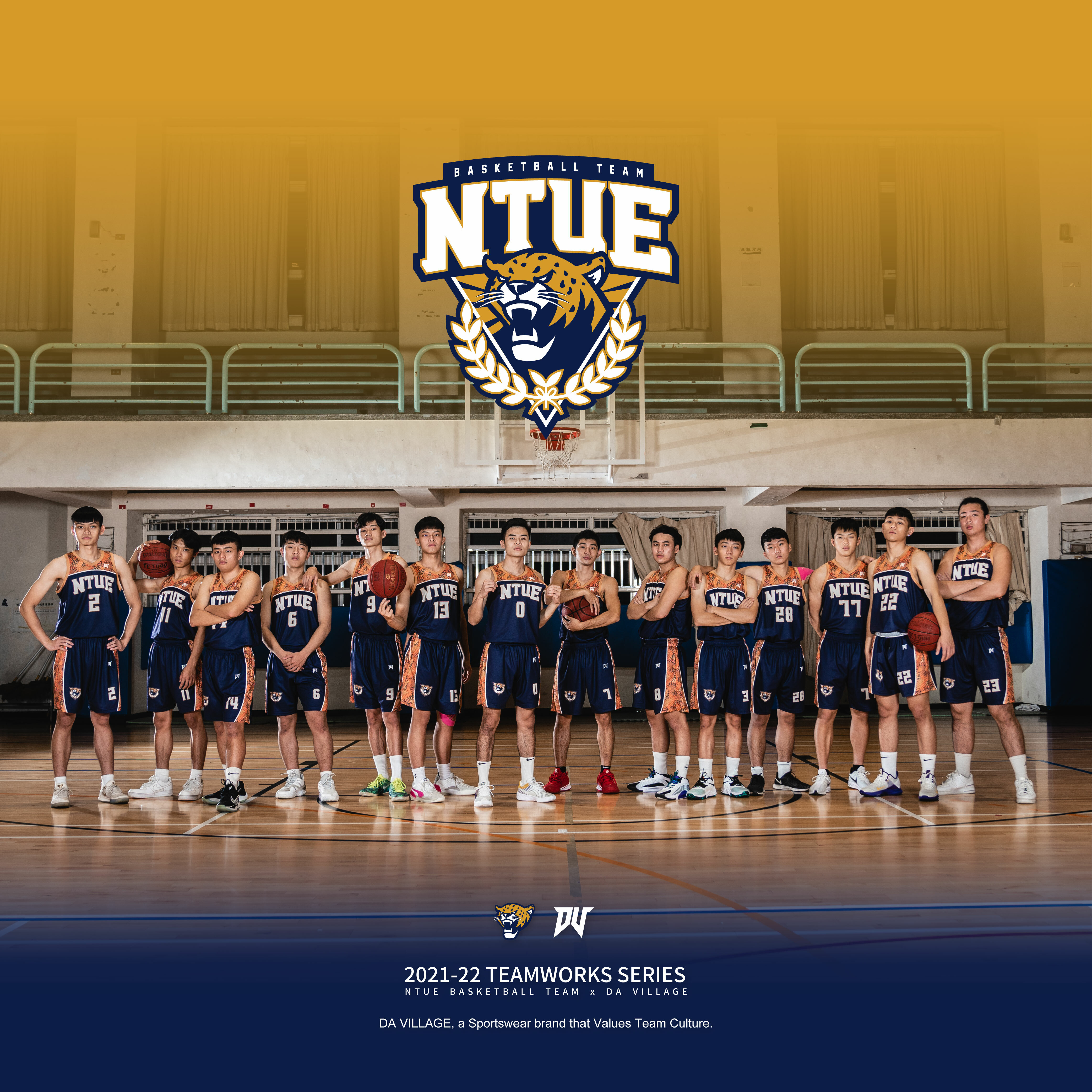 本次設計在主視覺運用了國北教大吉祥物「獵豹」淺褐色的身體顏色,在紋路上也加入了校徽中的元素,也運用到校徽主要的深藍色做搭配。期待今年大專盃可以打出更好的成績,讓大家知道「國北獵豹」不是好惹的!