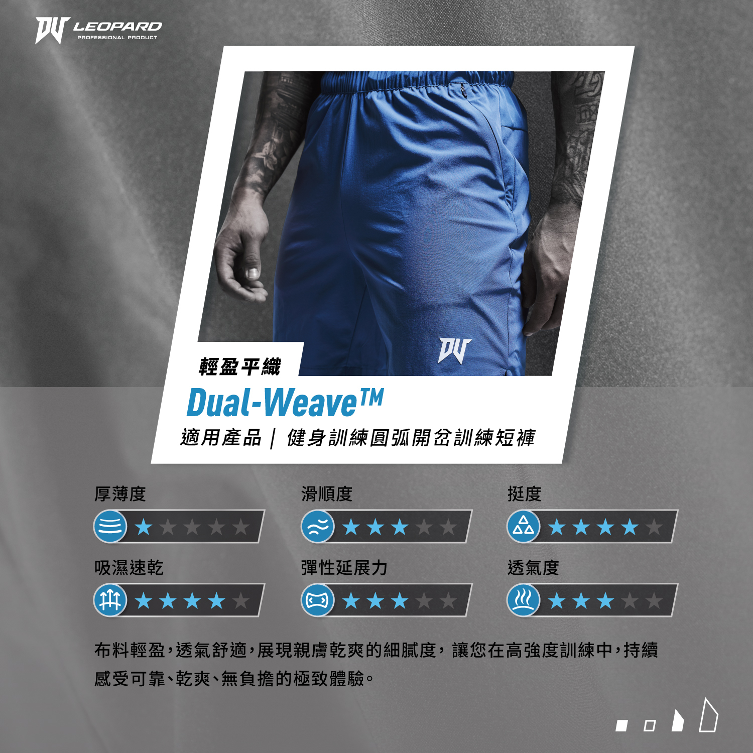 Dual (雙重的):精準地傳達了此面料的複合特性,例如:「挺度」與「彈性」的結合,,兩種看似矛盾的特質完美並存。