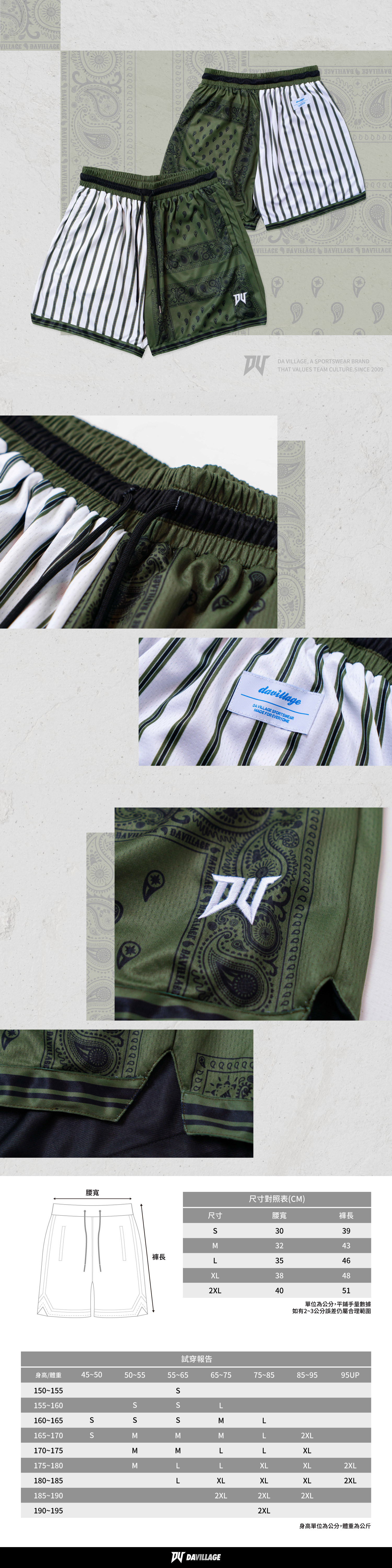 【運動生活】DV變形蟲條紋拼接 復古球褲|軍綠